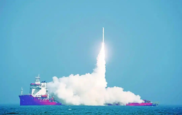 2025年5月19日,由烟台东方航天港总装出厂的谷神星一号海遥五运载火箭搭乘“东方航天港”号发射船发射升空