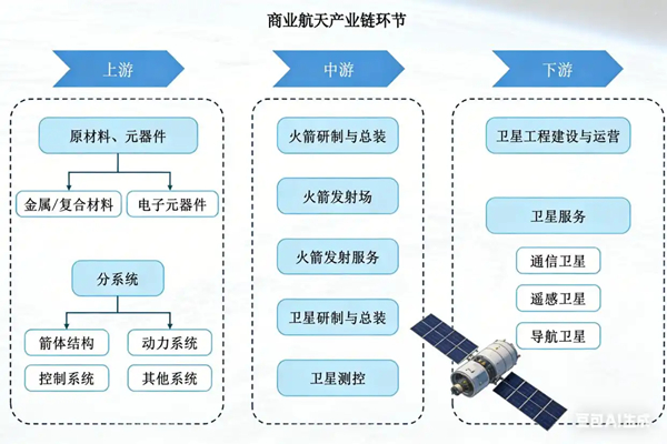 大规模星座组网势必产生庞大的制造和发射需求,与上游原材料生产、中游的卫星和火箭研发、下游的卫星运营等环节密切相关,也让资本市场对于整个商业航天赛道有着乐观的预期。