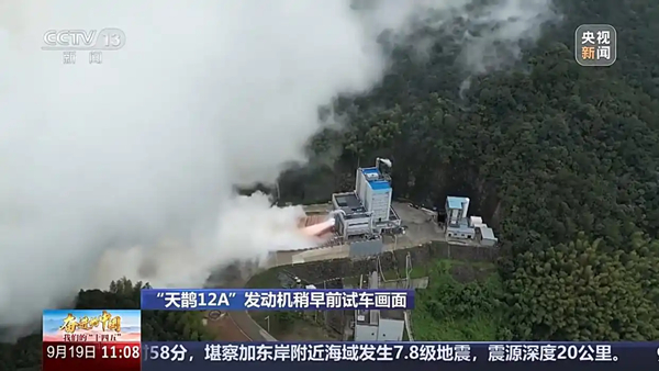总台记者 廖望:我现在就在浙江湖州的天鹊百吨级发动机试车台。这里三面环山,由一个矿坑改造而来,如今四周已经长满了毛竹。绿水青山之间,孕育着崭新的火箭动力系统。这里刚刚完成了一次火箭发动机的试车工作,简单来说就像是一次小测验,在地面点火,把发动机真实使用一遍,看看它能不能达到预定的标准。