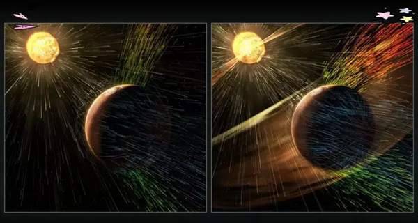 研究火星的科学家都认为数十亿年前,火星曾拥有温暖湿润的环境,厚厚的大气层足以支撑液态水存在,但如今这颗红色星球却沦为干旱的荒漠,大气层稀薄到星体表面气压只有地球表面的0.8%,说明火星的大气基本上都逃逸掉了,目前认为原因是太阳风将失去火星磁层保护的大气给吹跑了,但这一过程的具体动力学机制始终缺乏立体观测数据。