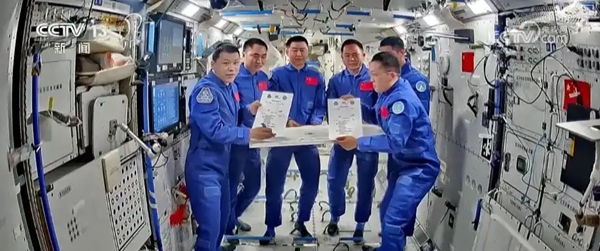 此前,两个乘组在空间站会师之后,6名航天员使用刚刚被带上太空的新装备——热风烘烤机,在空间站做了一顿烧烤大餐,庆祝中国空间站第7次太空会师。
