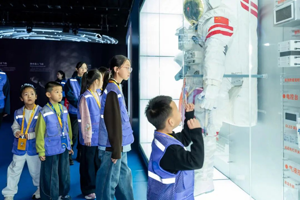 另一处的互动体验区俨然成为孩子们的“太空游乐园”。在“月宫探秘”互动装置中,绘制属于自己的航天器并与投影画面互动;在球幕影院体验《火星救援》的惊险刺激;戴上“巡天观宇”VR设备,飞跃八大行星,感受宇宙级的壮丽与浪漫。“孩子对这些操作类项目特别感兴趣,既能玩得开心,又能潜移默化了解航天知识,说不定以后会对航空领域产生更多向往。”带着4岁儿子观展的马先生笑着说。